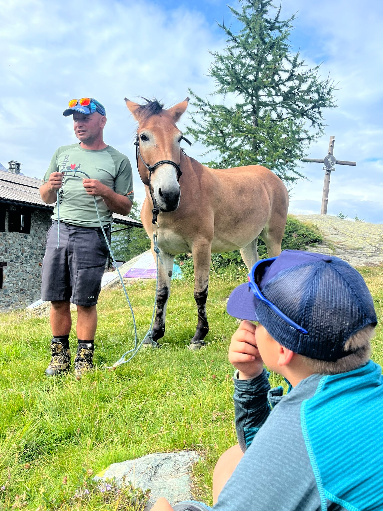 Non sono solo io ad accompagnarti in questa avventura, ma anche le mie fidate mule, Naomy e Valentina. Loro si occupano di trasportare il necessario per l’escursione: tende, cibo, zaini e attrezzatura, lasciandoti libero di vivere il cammino senza pensieri. Possiamo accogliere gruppi fino a 15 persone, garantendo un trasporto massimo di 8 kg di bagaglio per ciascun partecipante.