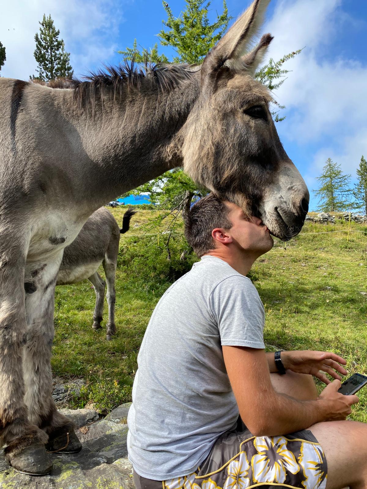Non sono solo io ad accompagnarti in questa avventura, ma anche le mie fidate mule, Naomy e Valentina in compagnia anche di Geppo e Martino. Loro si occupano di trasportare il necessario per l’escursione: tende, cibo, zaini e attrezzatura, lasciandoti libero di vivere il cammino senza pensieri. Possiamo accogliere gruppi fino a 20 persone, garantendo un trasporto massimo di 8 kg di bagaglio per ciascun partecipante.